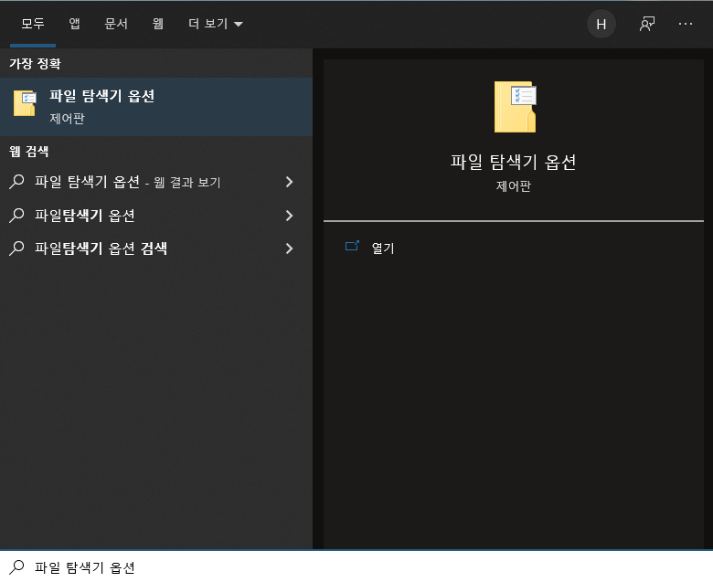 주로 좌측하단쪽에 위치한 윈도우 모양을 클릭하신 다음에 "파일 탐색기 옵션"이라고 검색해주세요. 이때 조금 주의하실게 있는데요, 바로 띄어쓰기 입니다. 띄어쓰기를 안했더니 저는 안뜨더라구요.
