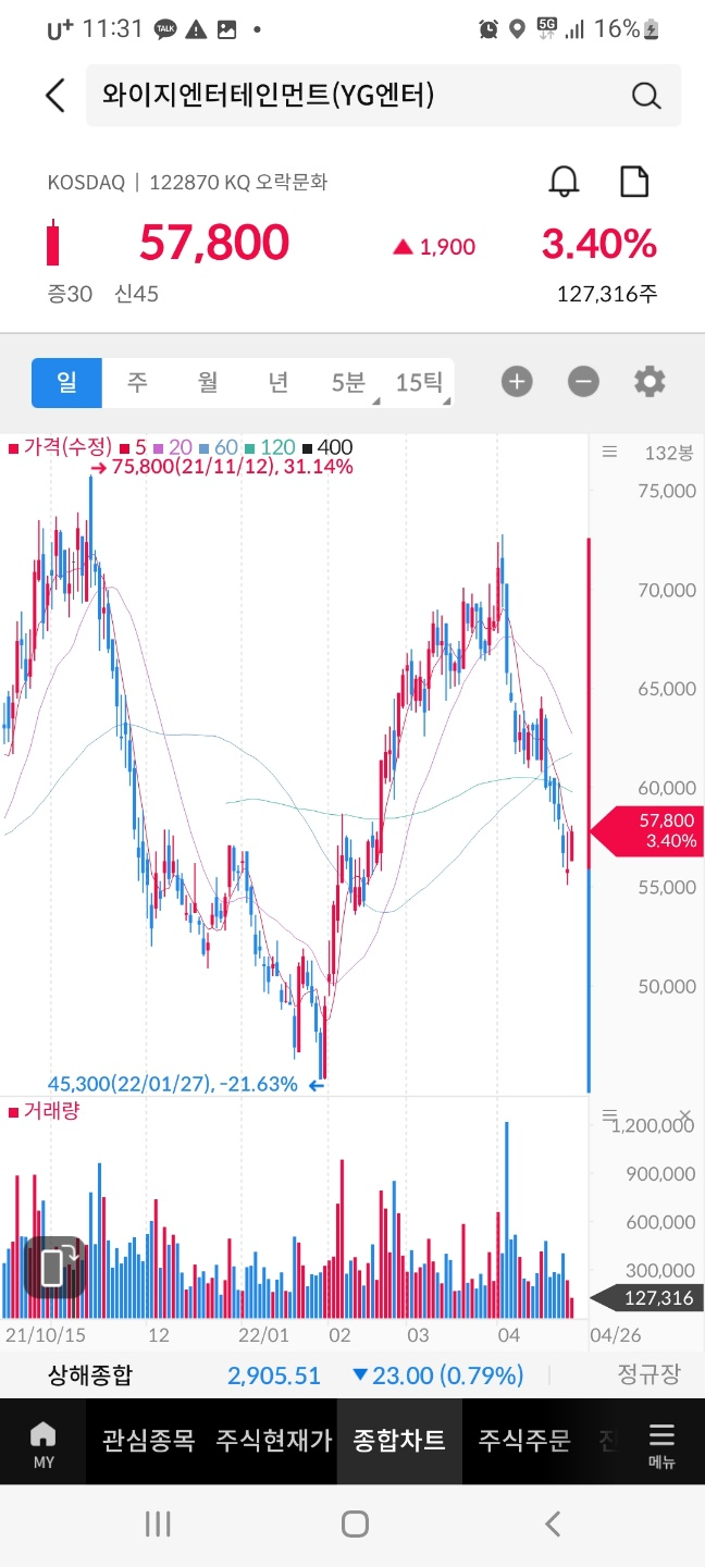 주식을 조금해 사고 팔다보니, 제가 좋아하는 주식들이 있습니다. 저는 YG엔터테인먼트 주식을 좋아라 합니다. 이유는 간단합니다. 제게 만족할만한 수익을 주기 때문이죠. 52800원에 들어가서 46000원까지 떨어져서 평단 낮추려고 추매해서 50000원대에 맞췄습니다. 그랬더니 어떻게 되었을까요? 기관에서 분석한 목표가는 85000원이었습니다. 근데 해보시다보면, 이렇게 높게까지 잘 안올라갑니다. 그래서 전 72000원에 딱 팔았어야 했는데.. 욕심부리다 타이밍 놓치고 62000원에 팔면서 23%정도 수익을 냈습니다. 멍청하죠. 욕심부리지 말고 72000원에 팔았어야 했는데.. 엔터3대장인 와이지는 버닝썬사태에도 오르는 기염을 토하는 정말 불사조같은 주식입니다. 그래서 떨어질때마다 줍줍했었죠. 또다른 엔터 3대장인 SM은 가만있다가 나만몰랐던 메타버스로 꾸준히 잘했다는데.. 그렇게 벼락같이 70000원갈줄 몰랐습니다. 소속가수와 배우들이 주춤주춤하고 30,0000원에서 오를기미가 없어보였는데, 메타버스 강자였다니.. 어쨌든 와이지엔터테인먼트는 수익률 23%