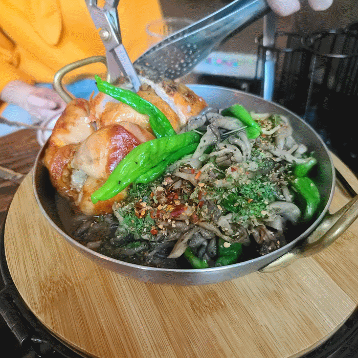 간판도 없는 이상한 가게. 그렇지만 안에 사람들이 엄청 붐비고 있어서 왠지 너무나도 들어가보고 싶은 곳이었습니다. 오픈주방으로 주문한 요리의 위생상태를 엿볼수도 있기도 해서 위생적으로 안심도 되고, 요리들의 비쥬얼도 심상치 않았습니다. 이날 먹은 요리는 갈비살&흑돼지구이 22,000원과 요괴해물라면 9,000원으로 2가지 시켰답니다.
