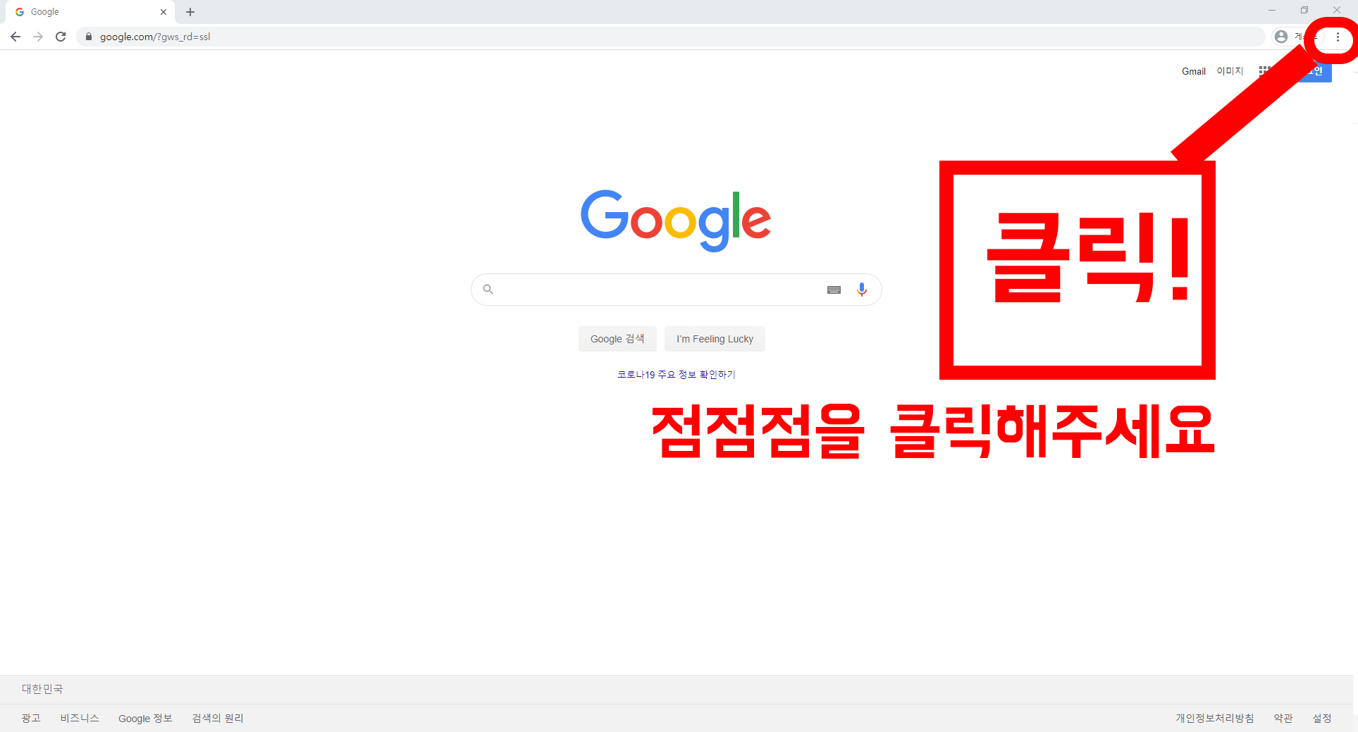위의 이미지에 표시한대로 클릭! 점점점을 클릭해주세요. 이건 크롬 맞춤설정 및 제어 라고 컴퓨터로 표시하자면, 제어판과 비슷한 것 입니다. 클릭을 하시고 나면 아래와 같은 화면이 나옵니다.