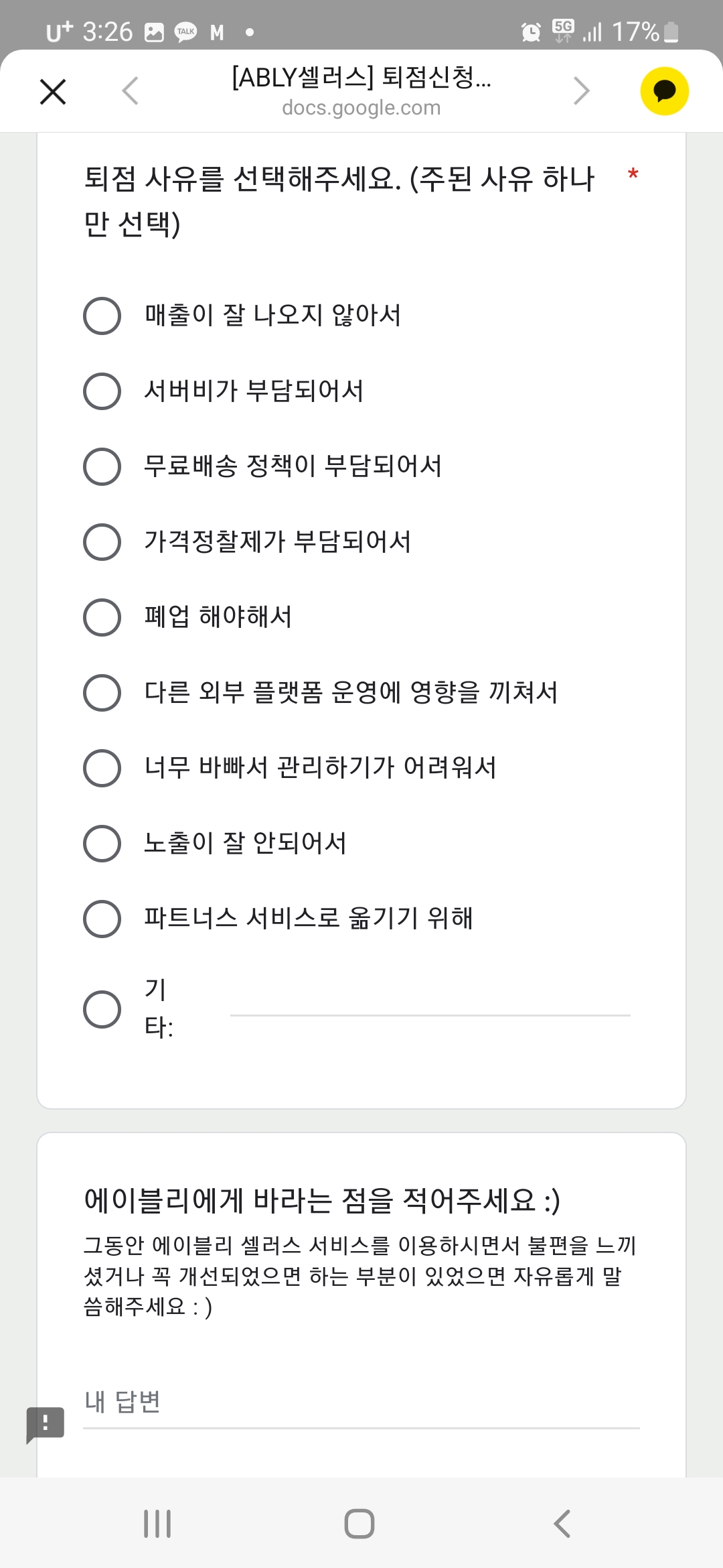 STEP3. 그럼 담당자님이 퇴점신청서링크를 보내줍니다. 이걸 작성해서 제출하시면 됩니다.