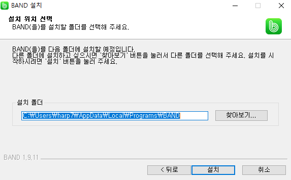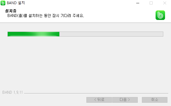 클릭하시고 나면 Window 용버젼으로 용량 86.1M 인 BAND - 1.9.11.exe 파일이 다운로드가 시작 되는데요. 다운로드가 완료 되고 나면 클릭해주시면 이제 설치가 시작됩니다.