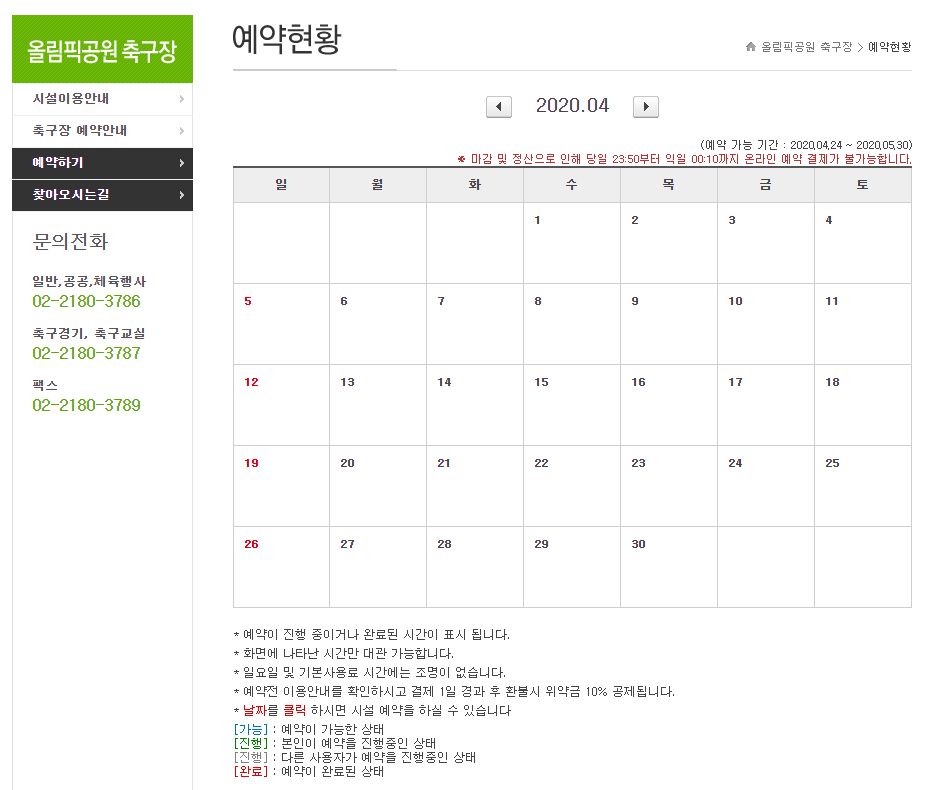 다른 축구 풋살장이 추첨인걸 감안하면, 이 점은 부지런하기만 하면 되니, 굉장히 장점이라고 볼 수 있습니다. 하지만 2시간에 풀경기장이기는 하지만 165,000원은 결코 저렴하지는 않죠. 아래 보시면 예약 가능기간은 4.24 ~ 5.30 이라고 적혀있어서 지금은 불가능 한대요. 회원 가입과 함께 하시면 되겠습니다. 다른 지역 처럼 지역우선순위는 아닌거 같네요.