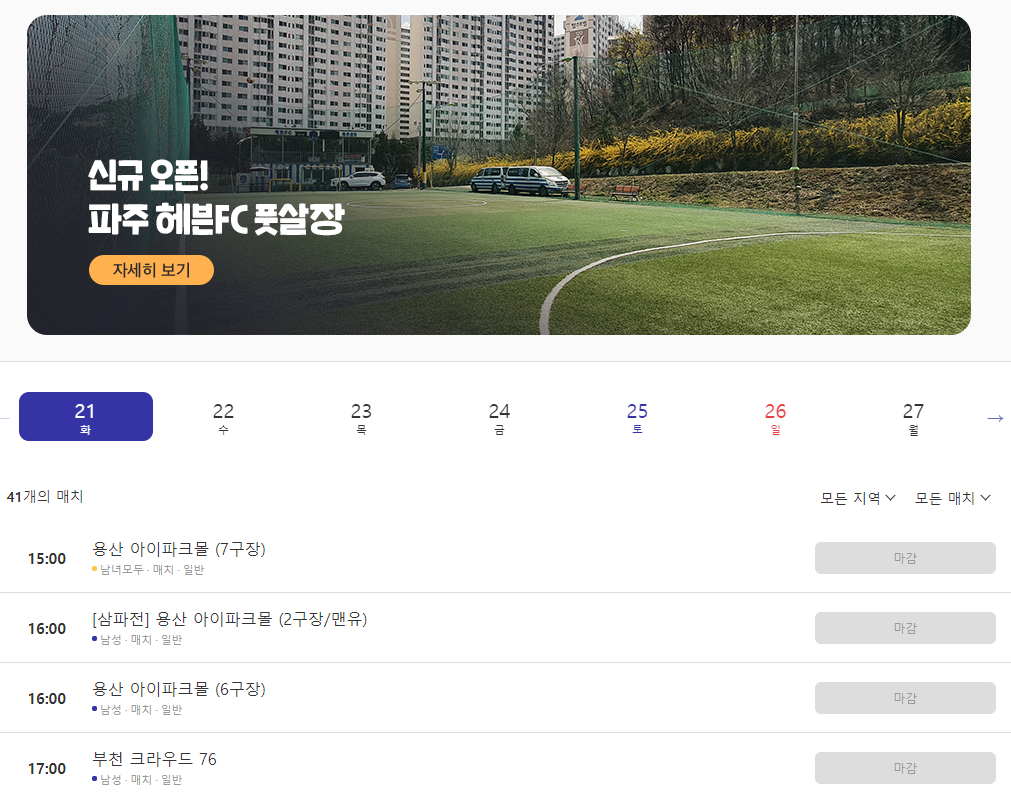 전국 300여개 풋살장, 축구장, 농구장 대관 & 검색