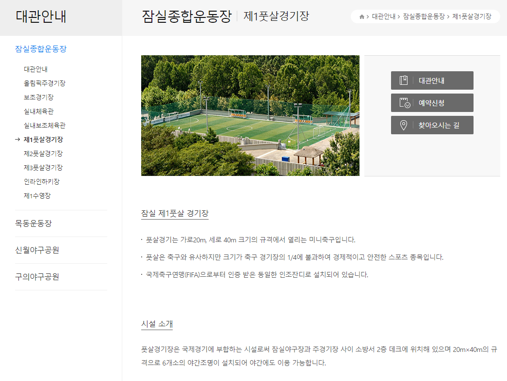 서울특별시 체육시설관리사업소 에서 관리하고 있는 이 곳은, 잠실종합운동장의 제1풋살경기장 제2풋살경기장 제3풋살경기장 으로 구성되어있는데요. 정말 예약 빡셉니다.