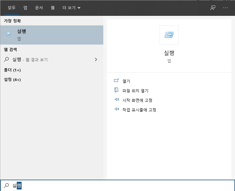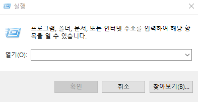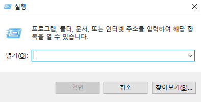 먼저 < 실행 >창을 띄워야 합니다. 저는 window10 운영체제 입니다.