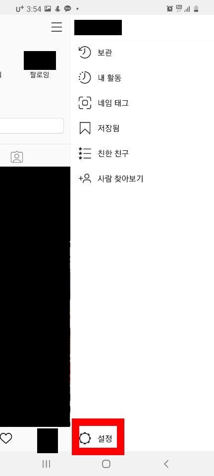 누르시면 하단에 설정 이라고 있는데요. 톱니바퀴 모양의 설정을 눌러주세요.