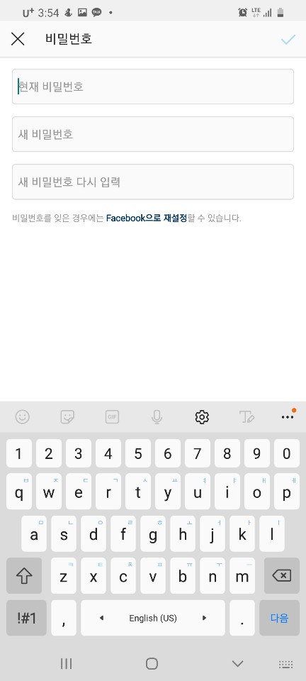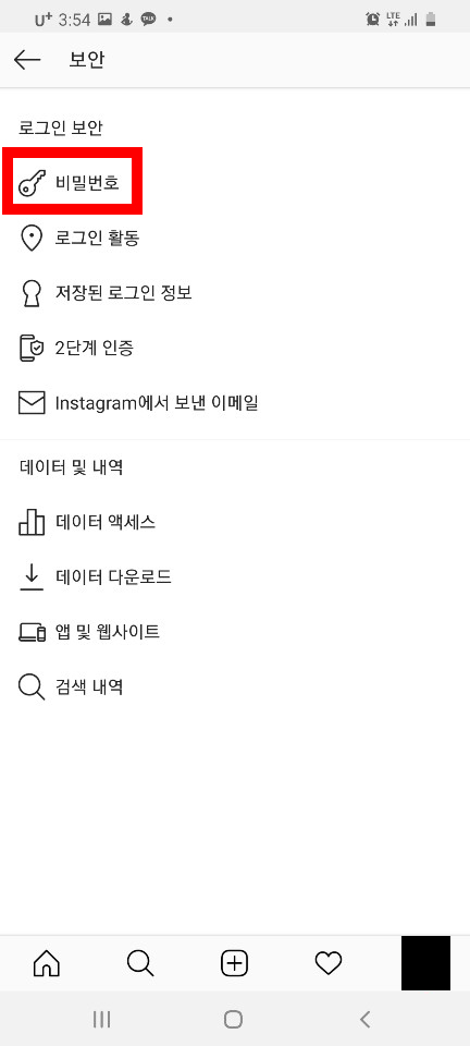 설정에 가시면 보안 이라고 쓰여있는게 있습니다. 이걸 눌러주세요. 아무래도, 비밀번호 변경은 보안 에서 관리하겠죠? 보안에 들어가시면, 로그인 보안 하단에 열쇠 모양의 비밀번호를 눌러주세요.
