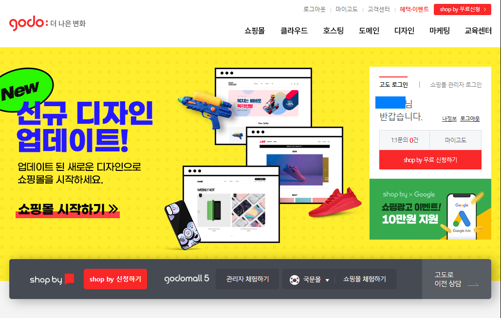 고도몰은 NHN에서 인수한 호스팅업체 입니다. 카페24의 온ㆍ오프라인에서의 강점이 두드러지는 반면, 고도몰은 추격을 하는 입장에서 나름 분투하는데요, 왜 고도몰이냐 하면 말입니다. 고도몰 역시 다른 업체들과의 차이점을 두었습니다. 대표적으로 쇼핑몰 무료이용인데요. 카페24처럼 코딩이 자유롭다라고는 할 수 없지만, 처음 하시는 분들께서 쉽게 접근할 수 있도록 무료폼들을 제공할 수 있습니다. 거기에 후이즈도 그렇지만, 호스팅 서비스를 제공한다는 점이 크네요. 조금 아쉬운점은, 이미지호스팅시 익스플로러를 사용하여야만 합니다. 이점은 참고하시면 되겠습니다.