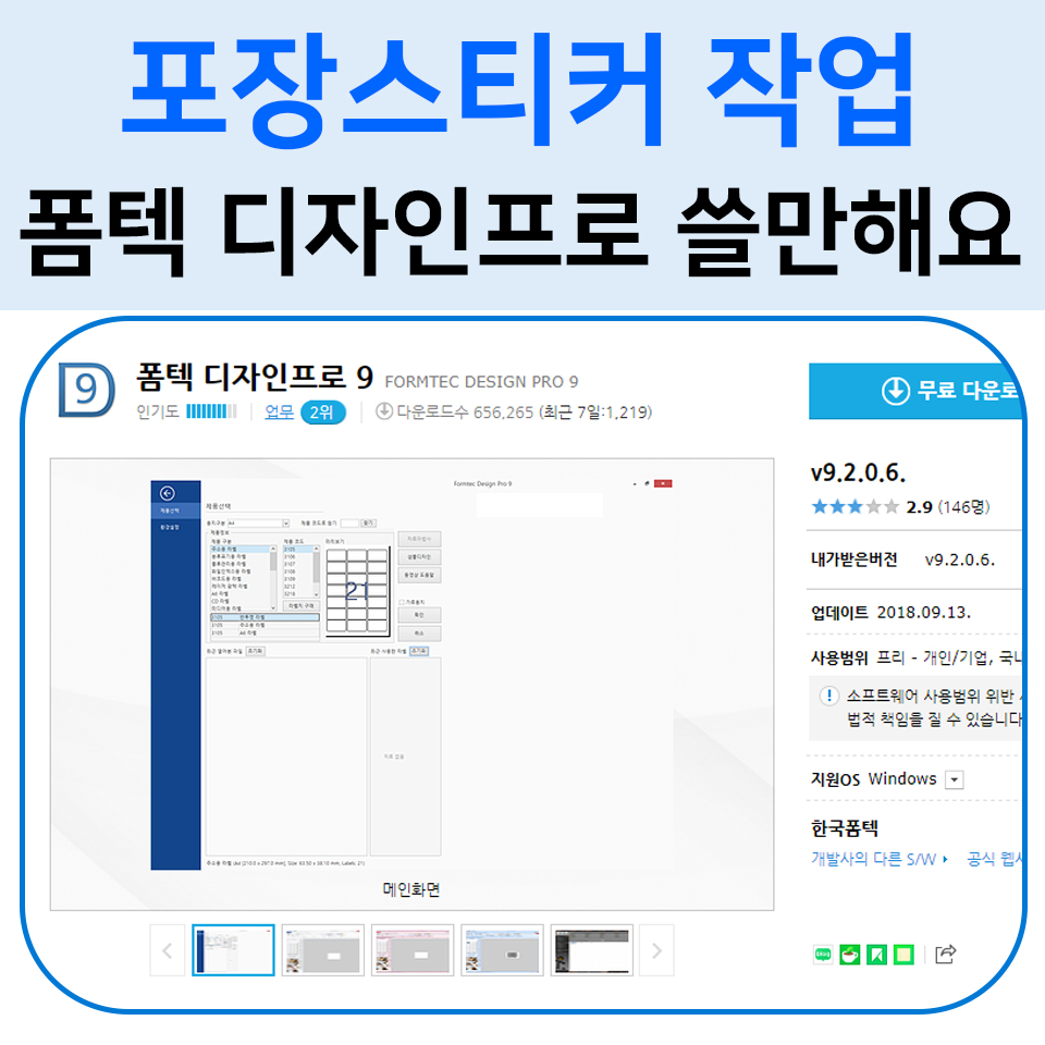 우선 설치를 해줘야 합니다. 네이버에서 폼텍 이라고 치면 두가지가 뜨는데요, 이중 최근에 업데이트된 폼텍 디자인프로 9을 받으셔야 합니다. 평도 생각보다 괜찮구요. 사용도 어렵지 않지만, 기능업데이트에는 어떤면에서는 좀 아쉬운모습도 보입니다.