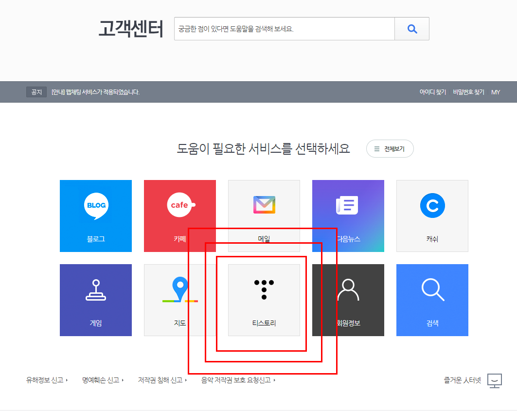 우선 지금 Tistory 썸네일 노출이 안되고 있는 사실을 인지하였기 때문에, 노출해 달라고 요청을 하기 위해, Daum 고객센터에 문의해보겠습니다.