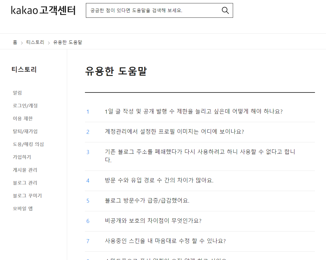 STEP2. 접속하셨다면, 아래와 같이 티스토리 문의를 눌러주세요.