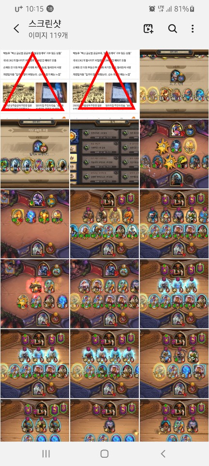 진짜 캡처가 되었어도 캡처 이미지를 못찾으면 말짱 도루묵입니다. 이 캡처가 된 이미지 어디 있을까요? 일단 폰을 켜시고 갤러리에 가시면 됩니다. 보통은 전체보기로 되어 있어서 한번에 확인이 되는데요. 만약 그게 안되어 있다면, screencapture 혹은 스크린샷 이라는 폴더를 찾아서 들어가시면 됩니다. 갤러리>스크린샷 폴더에 들어가서 좌측이미지에 빨간색세모로 표기한 2가지 이미지를 캡처했습니다. 오른쪽이미지는 캡처가 어떻게 되었나 하는 거에요. 제가 온화면에서 온핸드를 한상태여서, 사진에 대해 무엇을 할지 윗면과 아랫면에 라이크를 찍을지 화면을 돌릴지 수정을 할지에 대해 나온거에요. 캡처는 정상적으로 되었습니다.