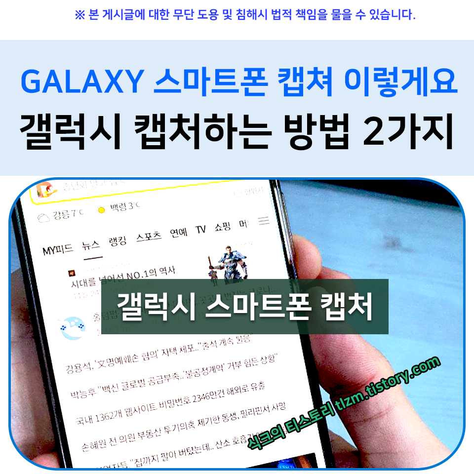 어언 갤럭시 외길인생 15년차, 중간에 아이폰4로 한번 갈아탄적은 있지만, 나의 뇌구조와 손은 삼성 인터페이스에 이미 익숙해져 있었고, 다시 돌아와 주위 아이폰을 구매하라는 적극적인 의견에도 갤럭시만을 고집하고 있습니다. 최소한 우리나라에서만큼은 갤럭시를 써야만 합니다. 여러가지 이유가 있겠지만, 일단 편해요. 이유는 지금이 생각이 안나네요(뭐?). GALAXY 스마트폰의 장점이자 정말 유익한 기능 중 하나인, < CAPTURE > 하는 방법 2가지에 대해서 오늘 말씀드리고자 합니다.