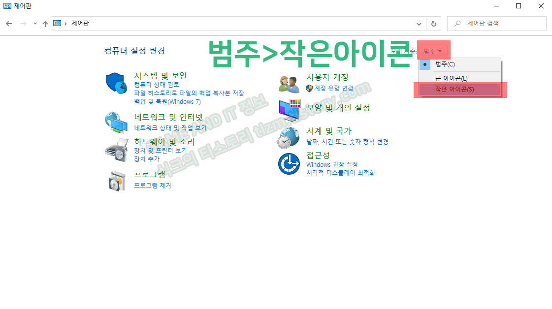 STEP2. 아래 사진과 같이 범주>작은아이콘을 클릭해주세요.