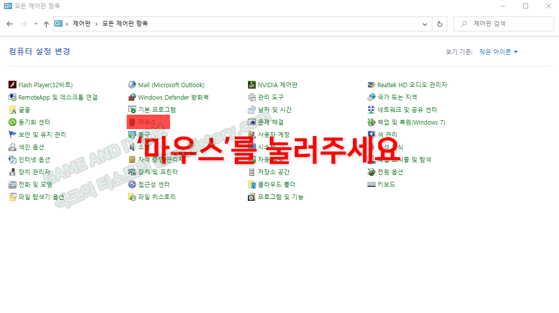 STEP3. 그럼 아래와 같이 화면이 뜹니다. 여기서 < 마우스 >를 눌러주세요.