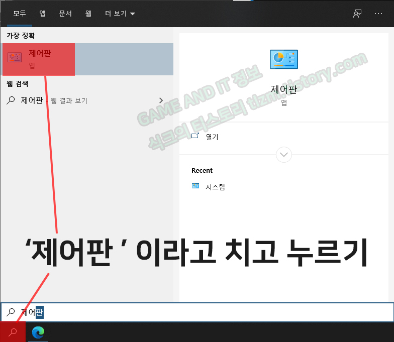 STEP1. 먼저 하단에 돋보기에서 < 제어판 >이라고 검색하고, < 제어판 >을 클릭해주세요.