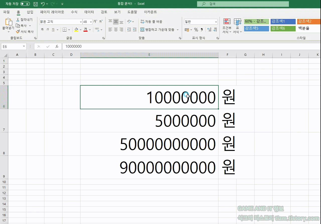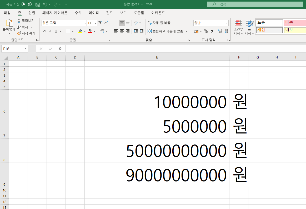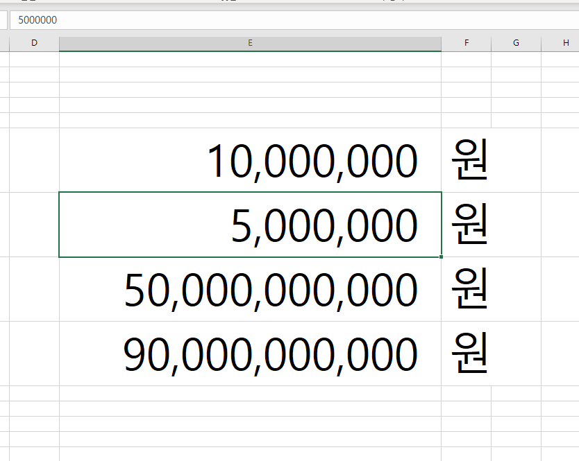 STEP1. 먼저 화면과 같이 콤마를 찍을 숫자를 준비했습니다.(저렇게 천문학적인 숫자를..?!)