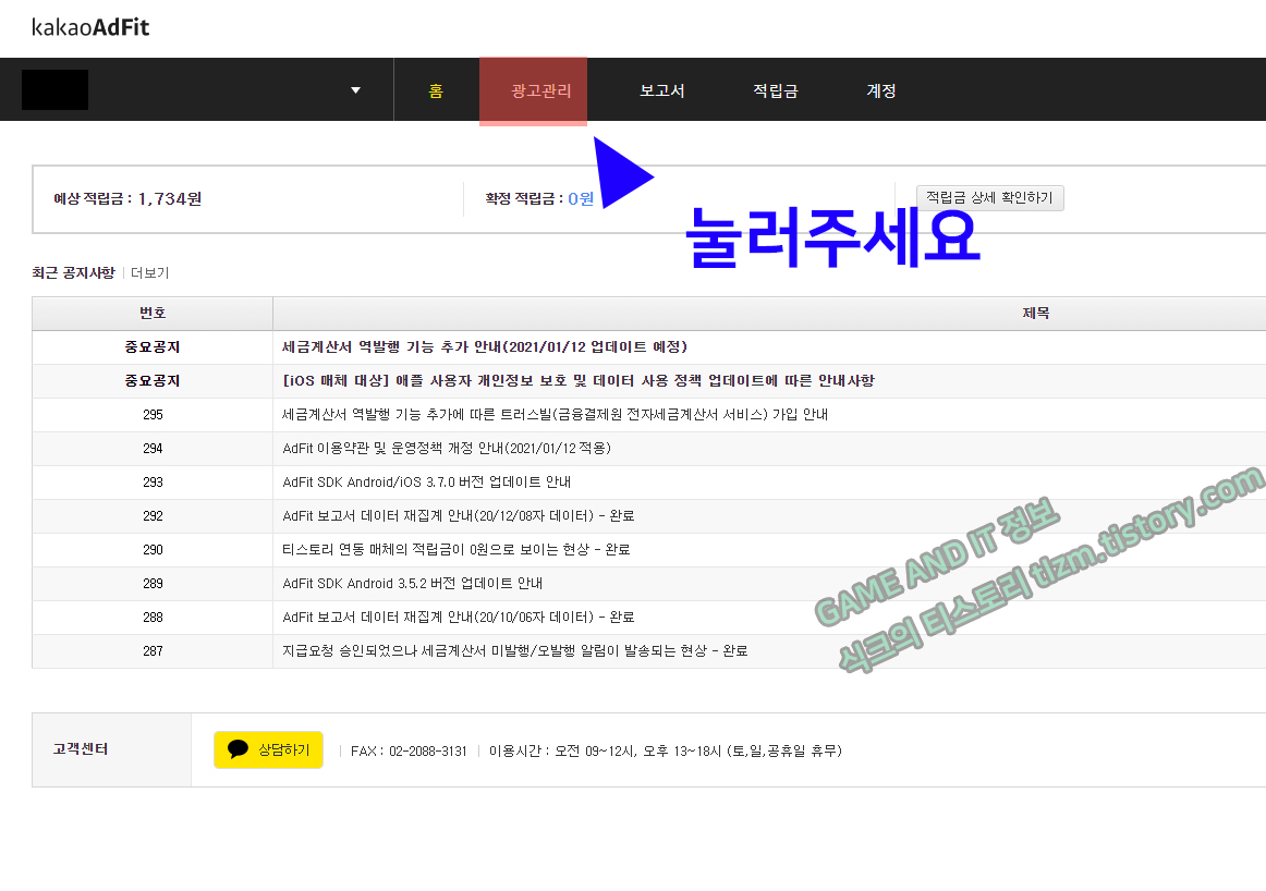 STEP1. 먼저 카카오애드핏에 접속해주시겠습니다.