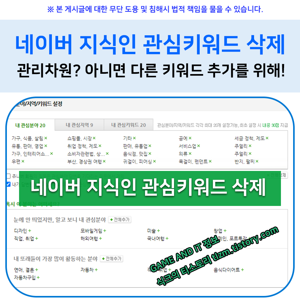 오늘은 네이버 지식인 관심키워드 삭제 하는 방법을 알려드리려고 합니다. 저도 꾸준히 지식인 활동을 하고 있는데요, 횟수로는 12년차 인거 같아요. 조금 우스울 수 있지만, 네이버 지식인 신 등급 되는게 제 버킷리스트 중 하나였거든요. 최근에야 달성했습니다. 나름 버킷리스트 100에서 하나 지울 수 있어서 무척 기쁩니다. 티스토리 하는 것도 제 버킷리스트 중 하나 입니다. 그럼 이제 네이버 지식인 관심키워드 삭제 하는 방법을 말씀드릴게요. 이게 별거 아닌건대, 좀 헤매게 되서요.