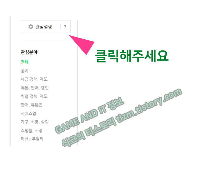 STEP1. 지식인에 접속하셔서 좌측에 보시면 관심설정 이라고 있습니다. 이걸 클릭해주세요.