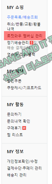 STEP2. 좌측에 보시면 로켓와우 멤버십 관리 라고 있습니다. 이걸 눌러주세요.