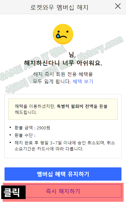 STEP4. 많이 본 그림이죠? 옥션이랑 비슷하네요. 개의치 않고 하단에 즉시 해지하기 눌러줍니다.