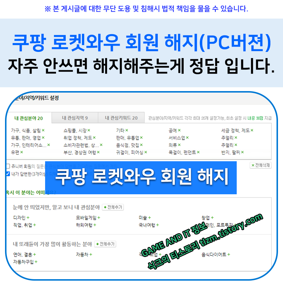 요즈음 같이 한푼이 아쉬운때에, 돈은 안쓰면 안쓸수록 정답 인거 같습니다. 저는 생각해보니, 쿠팡도 이용을 잘하는거 같아서 쿠팡 로켓와우 회원을 해지 하기로 하였습니다. 물론 엄청 쌉니다. 거기에 쿠팡 플러스(?)인가 스트리밍서비스도 이용할 수 있어 엄청 이득이기는 합니다만, 넷플릭스를 5명이서 공유해서 사용중이어서 이것도 큰메리트도 없었고, 쿠팡 정기배송과 일반배송도 가격이 차이가 없고, 뭐 여튼 해지하기로 하였습니다. 쿠팡 로켓와우 회원 해지 하는 방법 말씀드리겠습니다.
