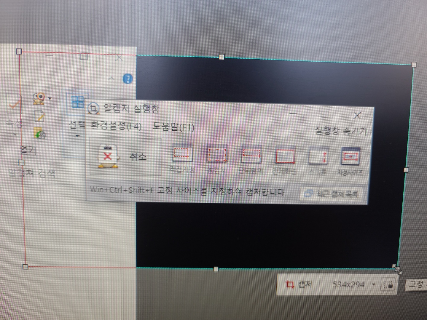 화면캡처 단축키 : 저는 안쓰는기능인데, 단축키 기능이에요. 저는 자꾸 한글과 엑셀과 충돌일어나서, 알캡처단축키를 변경했어요. 좋은건 단축키 설정변경을 사용자가 직접 할 수 있어요.