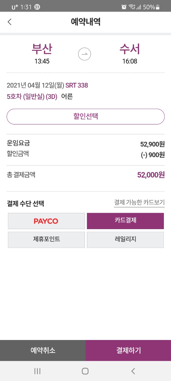 여기 보시면 정말 시간대가 많네요. 열차마다 시간마다, 소요되는 시간이 틀립니다. 어떤기차는 부산-수서 기준 경주를 들리는 곳도 있고 안들리는 곳도 있고 합니다. 대신 그만큼 금액의 약간의 차이가 있습니다. 수분에서 20분내외 더 SRT에서 시간을 보내셔도 괜찮으시다면, 무난하게 더 걸리는 시간대 타셔도 좋겠습니다. 약간 할인이 되니까요. 제가 클릭한 시간대는 900원이 할인되어, 52,000원입니다. 근데 이거 자주 타면, 너무 금액적으로 부담됩니다. 그랬는데, SRT에서 회원제를 가용하기 시작했습니다. 저의경우에는 우등회원으로 분류되어 분기마다 할인권이 나옵니다.
